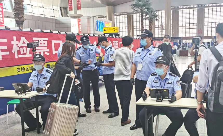 天津火車站和高鐵站的進京二次安檢通道入口處,民警正在使用海鄰科公司的X3和X3Pro移動警務終端,進行信息采集和安全檢查。
