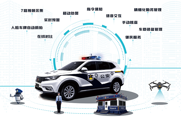5G+AI智能裝備實現(xiàn)移動接處警、自動采查、巡邏布控、打造巡邏防控新模式。