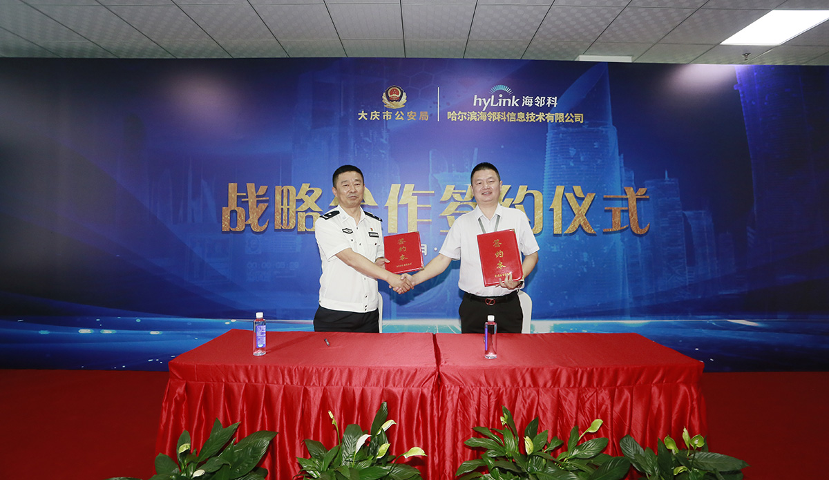 大慶市公安局黨委委員、科信辦主任嚴發(fā)全,法制支隊、社區(qū)警務支隊、科信處主要負責同志,及海鄰科公司相關負責人參加簽約儀式。