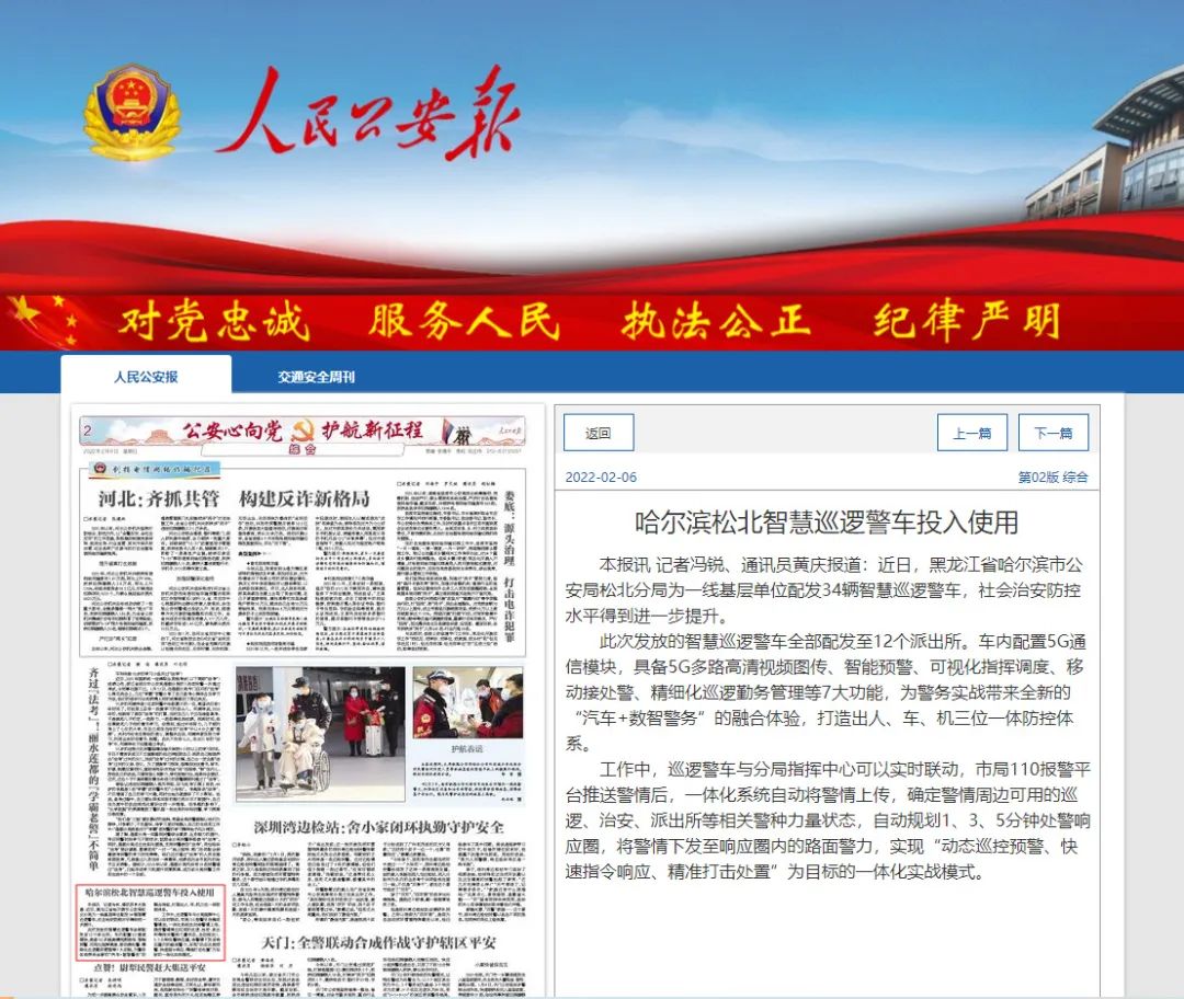 該智慧巡邏警車的成功應(yīng)用,引發(fā)人民公安報(bào)、龍視新聞聯(lián)播等媒體相繼報(bào)道。