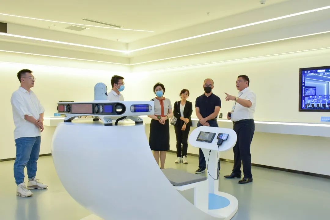 喬躍山司長和官英敏副廳長一行參觀了海鄰科數(shù)字化體驗中心,了解了海鄰科的發(fā)展歷程,并聽取了丁福生副總裁在企業(yè)發(fā)展布局、研究與開發(fā)、人才引進與建設(shè)等各方面進展的匯報。