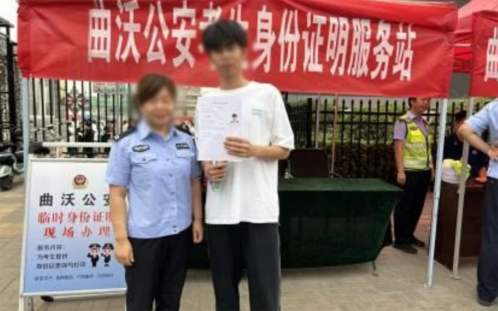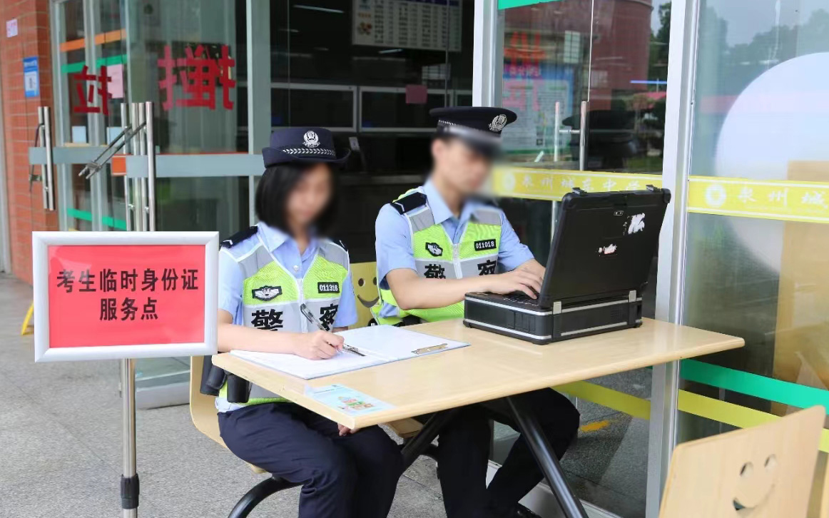 考生或家長到“考生身份證明服務(wù)站”辦理臨時(shí)身份證明,只需要提供姓名、二代身份證號碼、準(zhǔn)考證等證明,由服務(wù)站民警核查相關(guān)信息后,經(jīng)核實(shí)信息正確無誤,即可馬上出具臨時(shí)身份證明,從核驗(yàn)身份到開具證明僅需1分鐘,確??忌米C需求。