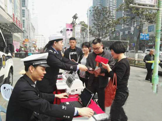 清明小長假期間,襄陽交警支隊(duì)分別在長虹路武商廣場、襄陽火車站、人民廣場處設(shè)置“流動車管所”,為市區(qū)廣大車主和駕駛員朋友提供“上門”便民服務(wù)。民警在現(xiàn)場利用綜合移動警務(wù)終端,為廣大車主、駕駛員辦理駕駛證審驗(yàn)、換證、六年內(nèi)免檢機(jī)動車檢驗(yàn)合格標(biāo)識申領(lǐng)等車駕管理服務(wù)項(xiàng)目,讓大家逛街時就能享受到“流動車管所”的服務(wù),得到辦事群眾的一致好評。節(jié)假日間,共辦理駕駛證業(yè)務(wù)15筆,核發(fā)機(jī)動車標(biāo)志10個,辦理年審11筆,業(yè)務(wù)咨詢180人次。