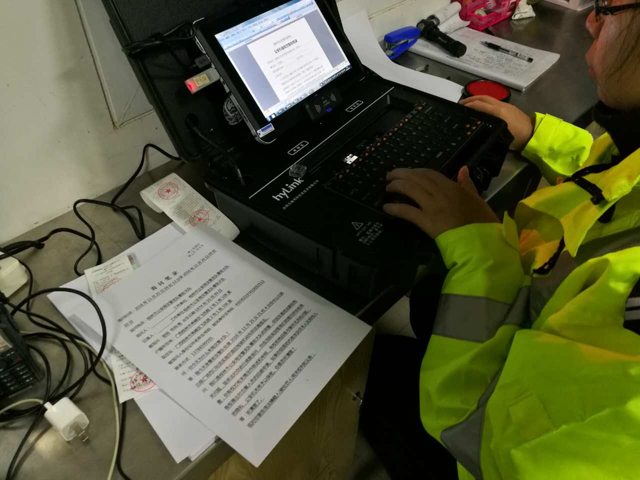 11月25日晚上,疊彩交警大隊(duì)在北極廣場(chǎng)設(shè)卡開(kāi)展綜合整治行動(dòng),期間查處酒駕行為兩起,其它交通違法行為8起。與以往不同的是,此次交警查處酒駕行為,除了通過(guò)呼氣式酒精測(cè)試儀進(jìn)行測(cè)試和執(zhí)法記錄儀固定證據(jù)外,還使用了從深圳市海鄰科公司采購(gòu)的一批國(guó)內(nèi)較先進(jìn)的公安平板電腦執(zhí)法一體箱!借此可以在現(xiàn)場(chǎng)完成信息查詢(xún)、制作詢(xún)問(wèn)筆錄、打印處罰決定書(shū)等一系列流程。節(jié)省了傳統(tǒng)的將當(dāng)事人帶回大隊(duì)本部再做處理的時(shí)間和人力損耗,提高查處效率。