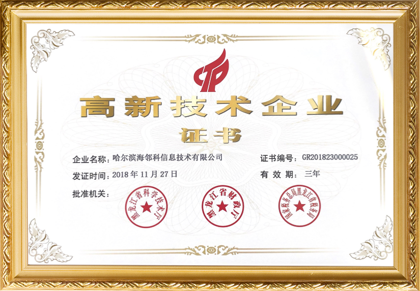 喜訊:海鄰科哈爾濱子公司獲得2018年國(guó)家高新技術(shù)企業(yè)資格認(rèn)定